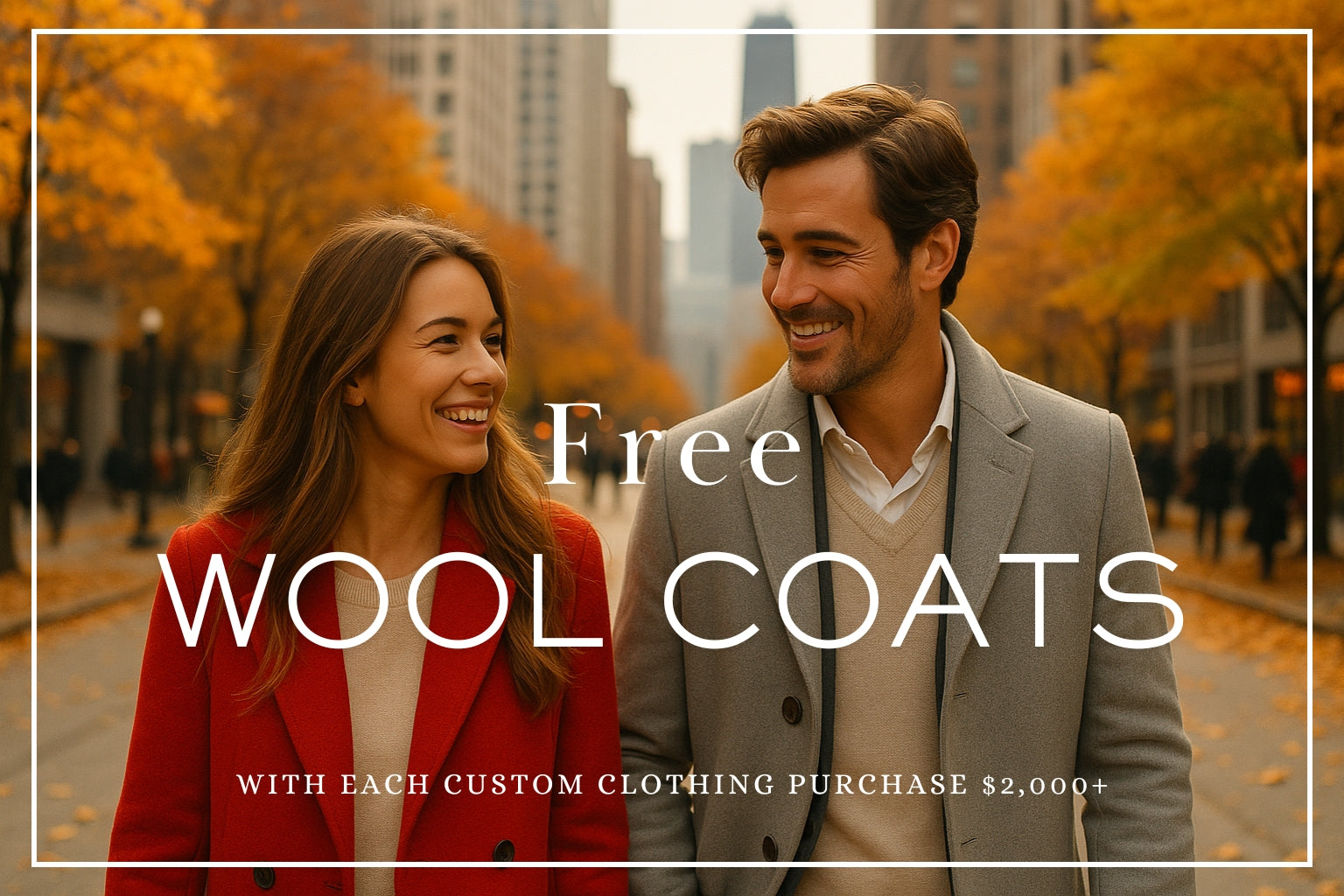 The Annual Wool Coat Event is here! - Free Wool coat with custom clothing purchase - See Details >